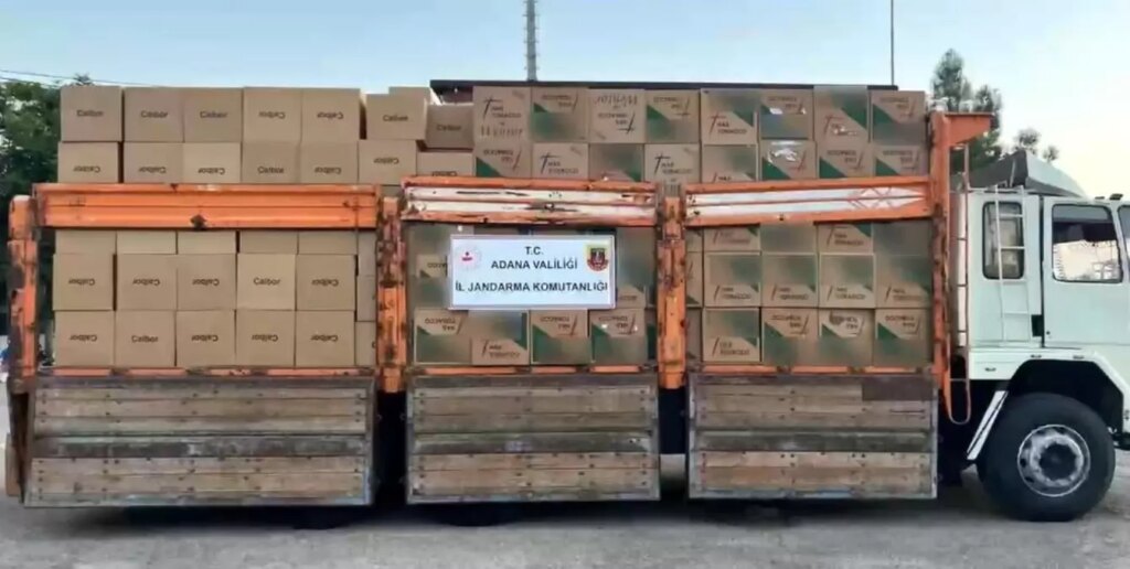 Adana’da bir tırda uydurma bandrollü 5 milyon 500 bin makaron ele geçirildi, 2 kuşkulu gözaltına alındı.