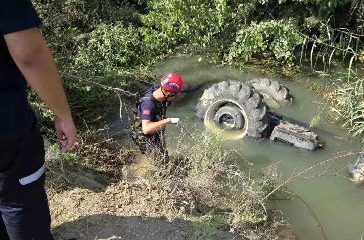 Adana'nın Yüreğir ilçesinde sulama kanalına devrilen traktördeki şoför Necdet Okur hayatını kaybetti. Olay, geri...