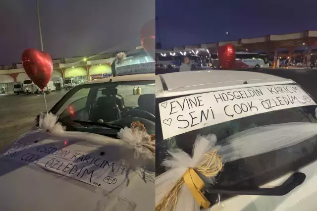 Merkez Sarıçam ilçesinde yaşayan Sadık Şaşmaz’ın (29) gebe eşi Melek (25), geçtiğimiz ay memleketi Batman’a gitti. Yaklaşık bir ay Batman’da kalan Melek Şaşmaz, 31 Ağustos Pazar günü sabaha karşı geri Adana’ya geldi. Eşini otogarda karşılamaya giden Sadık Şaşmaz, arabasını balonlar ile süsleyip, üzerine de ‘seni çok özledim karıcığım, meskenine beğenilen geldin’ yazısı yazdı. Sürpriz karşısında şaşıran bayan, eşine sarılıp teşekkür etti.