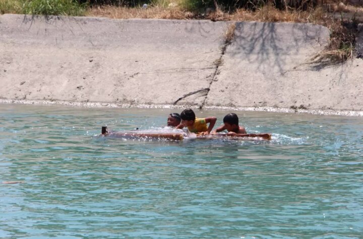 Adana'da kavurucu sıcaklarla birlikte birtakım çocuklar, sulama kanalına girerek eski bir koltuğu kayık üzere...