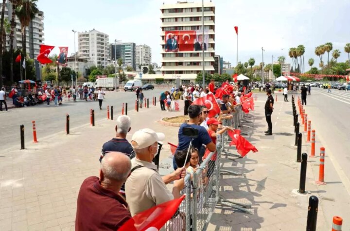 Türkiye'nin en sıcak vilayetlerinden Adana'da 30 Ağustos Zafer Bayramı kutlamaları, hissedilen hava sıcaklığının 41...