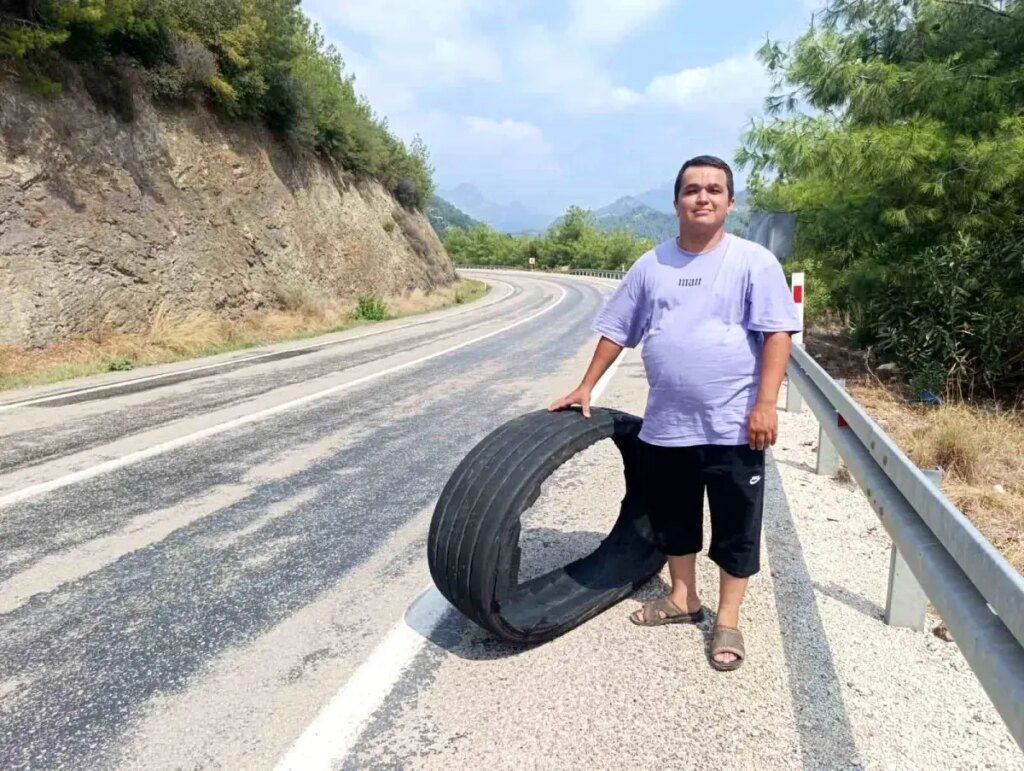 Adana’nın Kozan ilçesinde yolda kalan kamyon lastiğine çarpan bir şoför, öbür araçların çarpmaması için lastiği yol kenarına çekmek isterken yaşanan kazayı saniye saniye görüntüledi.